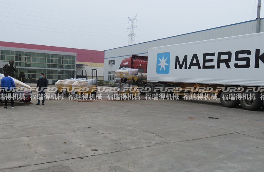 3月19日,福瑞得機(jī)械裝柜出口一批座駕壓路機(jī)。