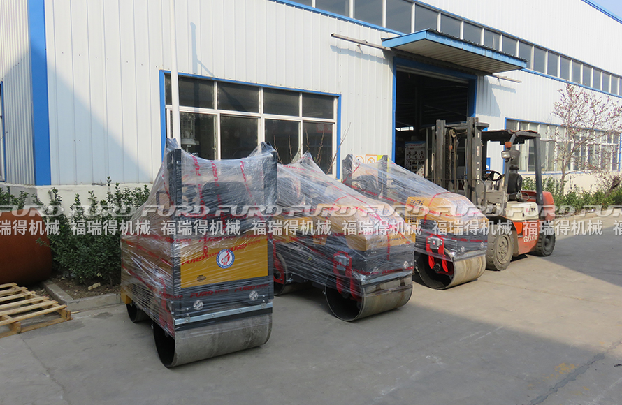 福瑞得機(jī)械3臺座駕雙鋼輪壓路機(jī)打包發(fā)往浙江