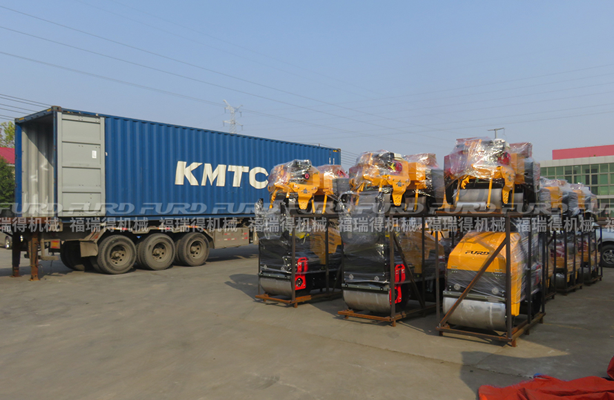 福瑞得機(jī)械19臺壓路機(jī)打包出口阿聯(lián)酋