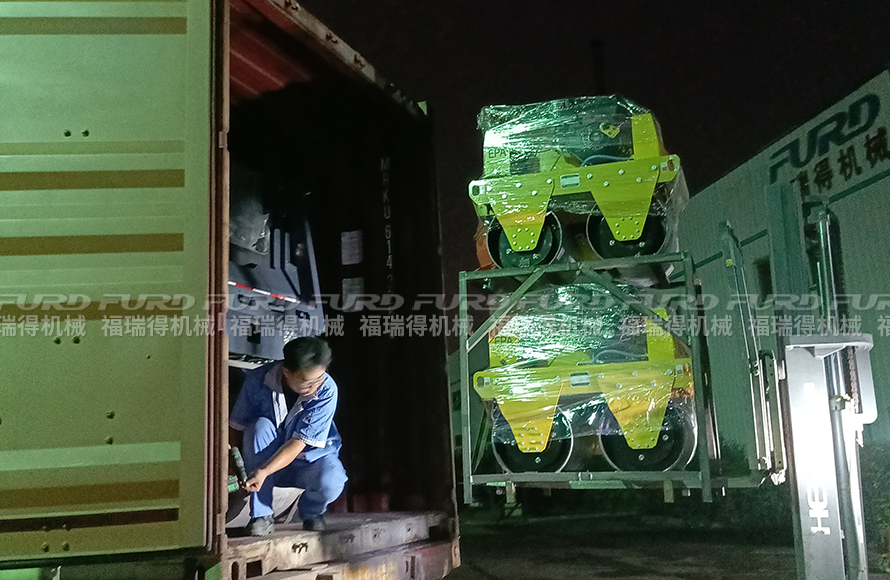 福瑞得一批路面壓路機(jī)裝柜出口馬來西亞