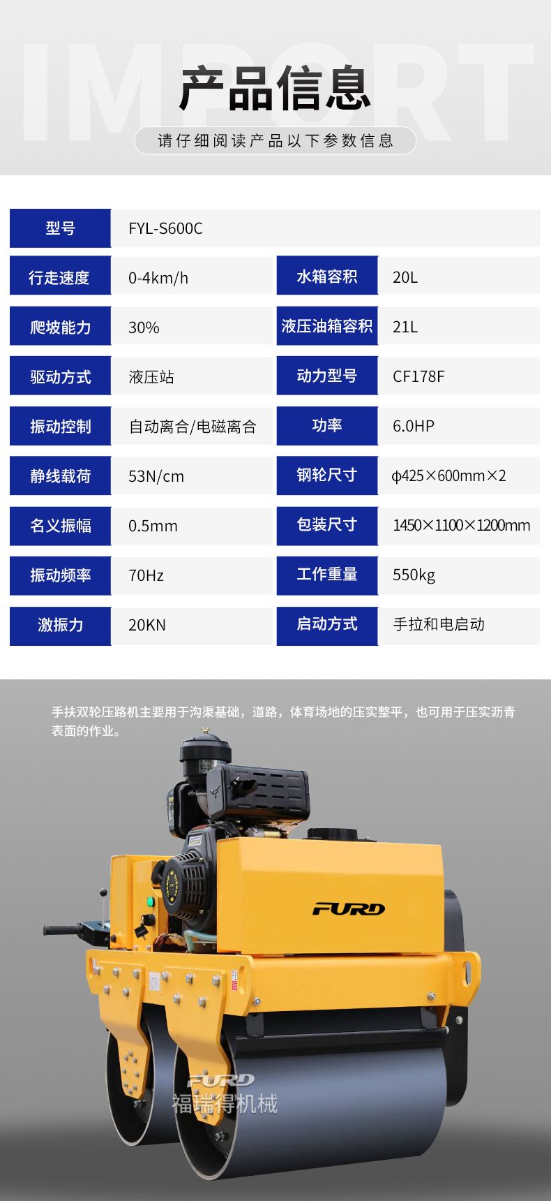 主要用于溝渠基礎(chǔ),道路,體育場(chǎng)地的壓實(shí)整平,也可用于壓實(shí)瀝青表面的作業(yè)。