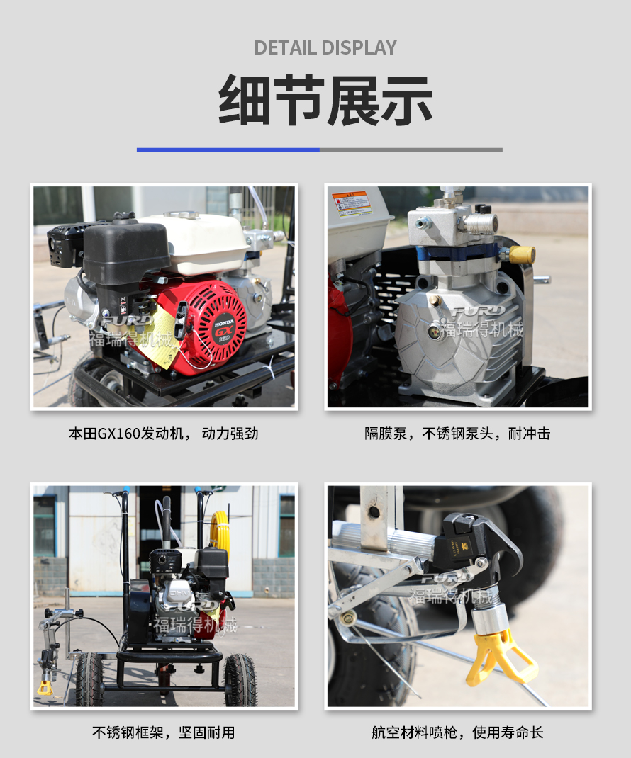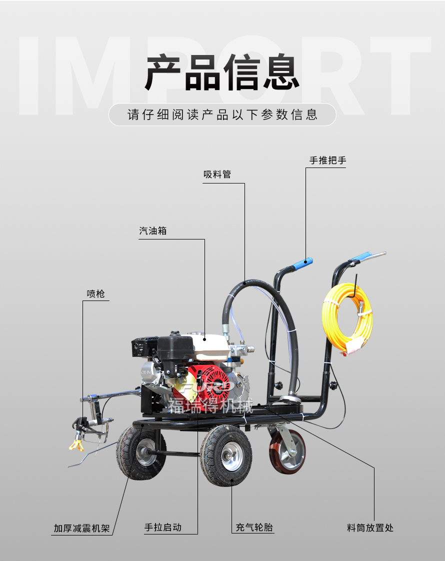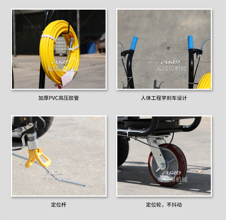小型手推式道路劃線機(jī)是一種在道路、停車場、廣場和跑道等平整地面上劃出不同約束、指引和警示等規(guī)則限制標(biāo)志的路面施工機(jī)械。最常見的就是在馬路上劃斑馬線,在路上劃車庫線、停車線等等應(yīng)用于小型工程、短途施工,活動(dòng)方便,靈活操作。