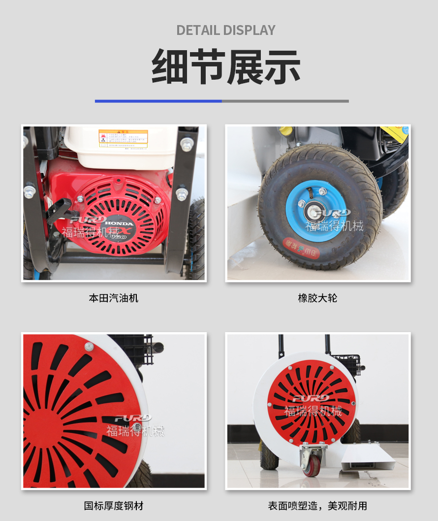 用于水泥、瀝青路面的清掃、清潔。 1.本田汽油動(dòng)力,性能穩(wěn)定; 2.動(dòng)力平衡極好的風(fēng)葉,保證整體的穩(wěn)定性; 3.超大風(fēng)量,性能優(yōu)越。