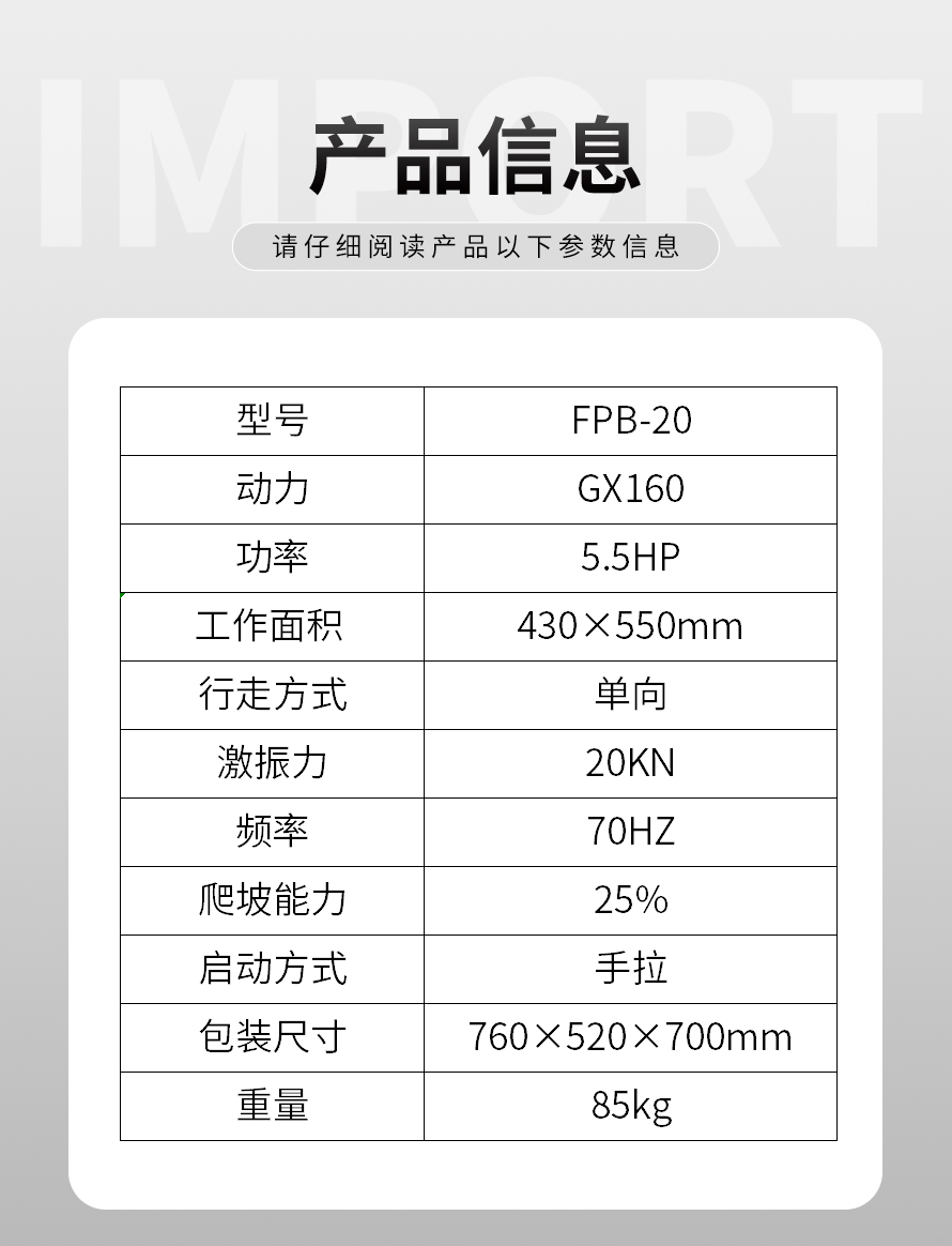 適用于路基邊緣、橋涵、管道、溝槽底部等狹長(zhǎng)地帶的壓實(shí)。 本田汽油動(dòng)力,名牌品質(zhì)保證。