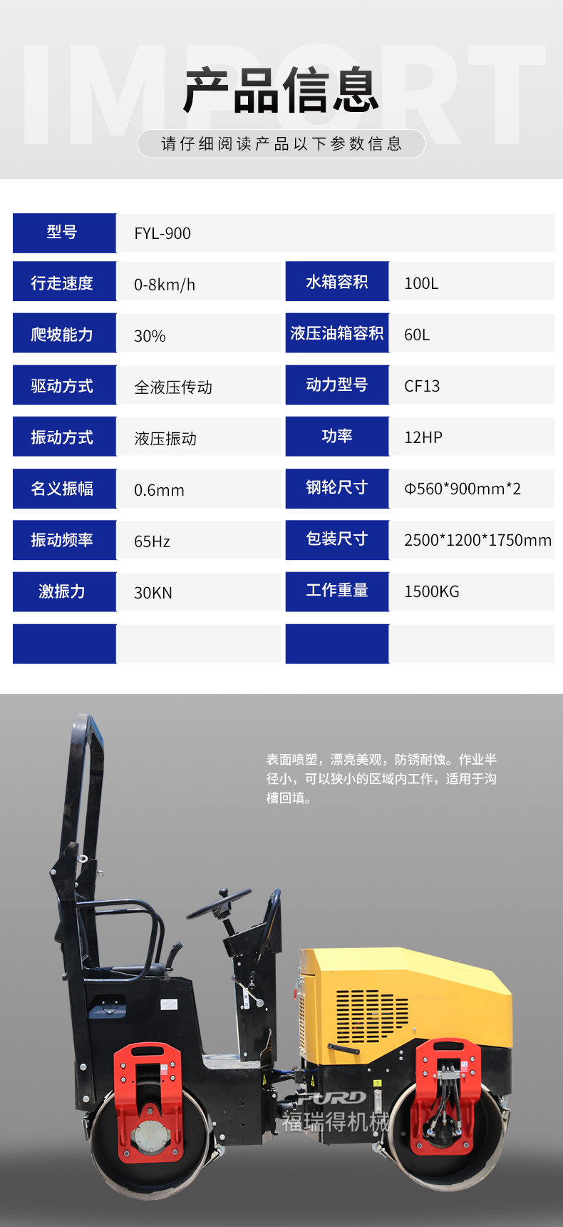 FYL-900CC 1.5噸全液壓振動(dòng)壓路機(jī)