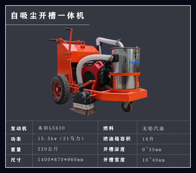 混凝土路面開槽吸塵一體機集開槽、吸塵為一體,解決了傳統(tǒng)開槽機工作產生灰塵的問題