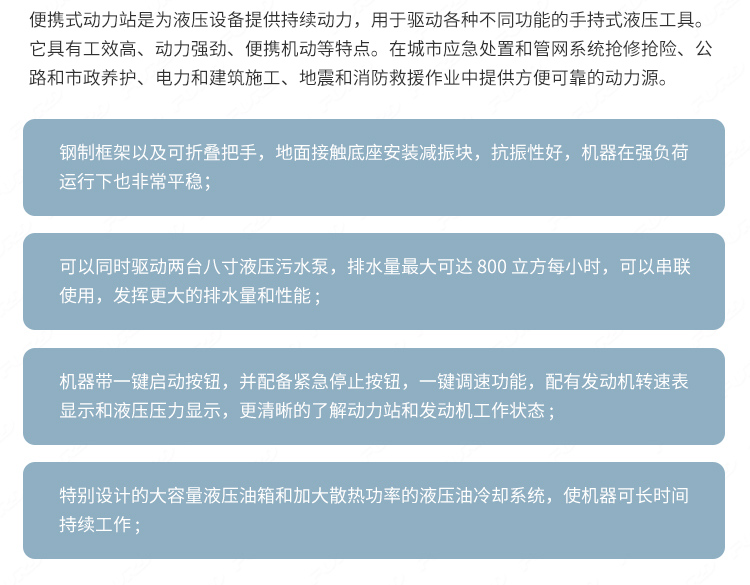 適用于路面搶修、道路施工、市政維護、保養(yǎng)、園林等工作場景 ;.設(shè)備安裝便捷,搬運簡便,適應(yīng)性強,可輕松解決破碎、切削、分裂、打樁、壓實等施工項目。